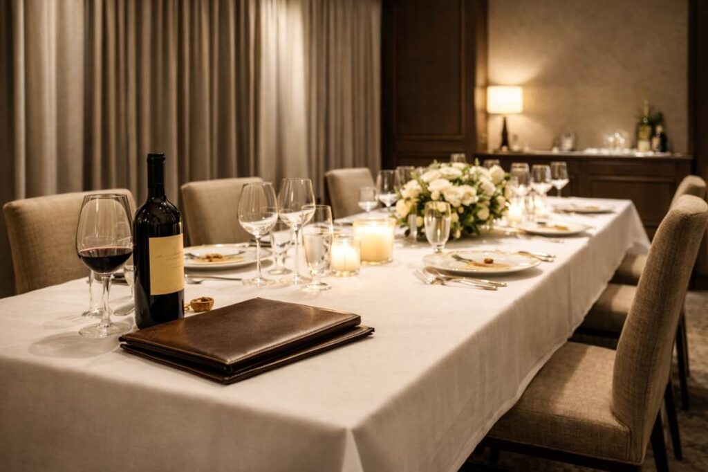 The most productive and enjoyable nights unfold over dinner, where pacing, conversation, and privacy are controlled. This is where relationships deepen and decisions happen.